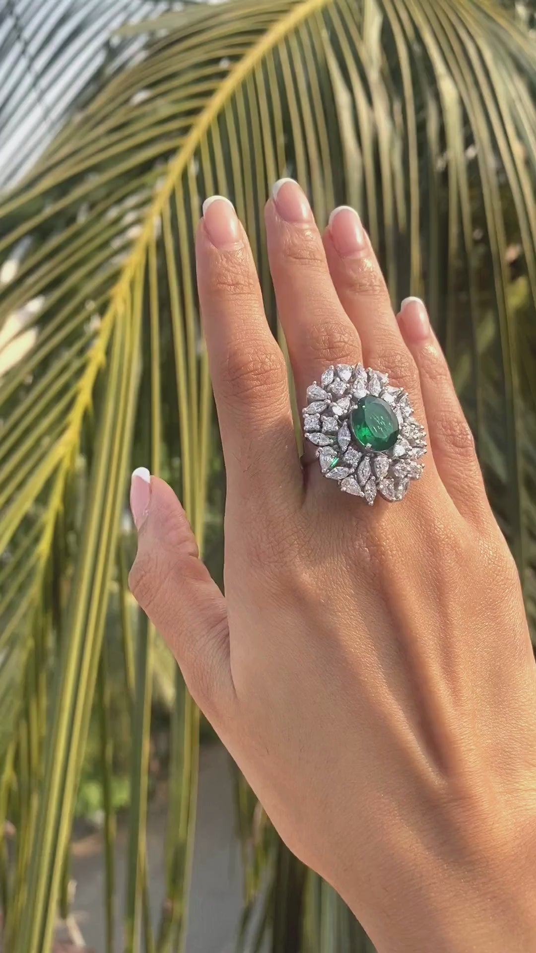 Unveil the elegance of our Cocktail Blooming Ring, where the heart of the design is a disc floret-like rich faux blue sapphire 5-carat oval stone. Surrounded by an enchanting array of multi-shaped fancy stones, this exquisite centerpiece mirrors the beauty of a blooming flower, capturing the essence of radiant allure and captivating charm.